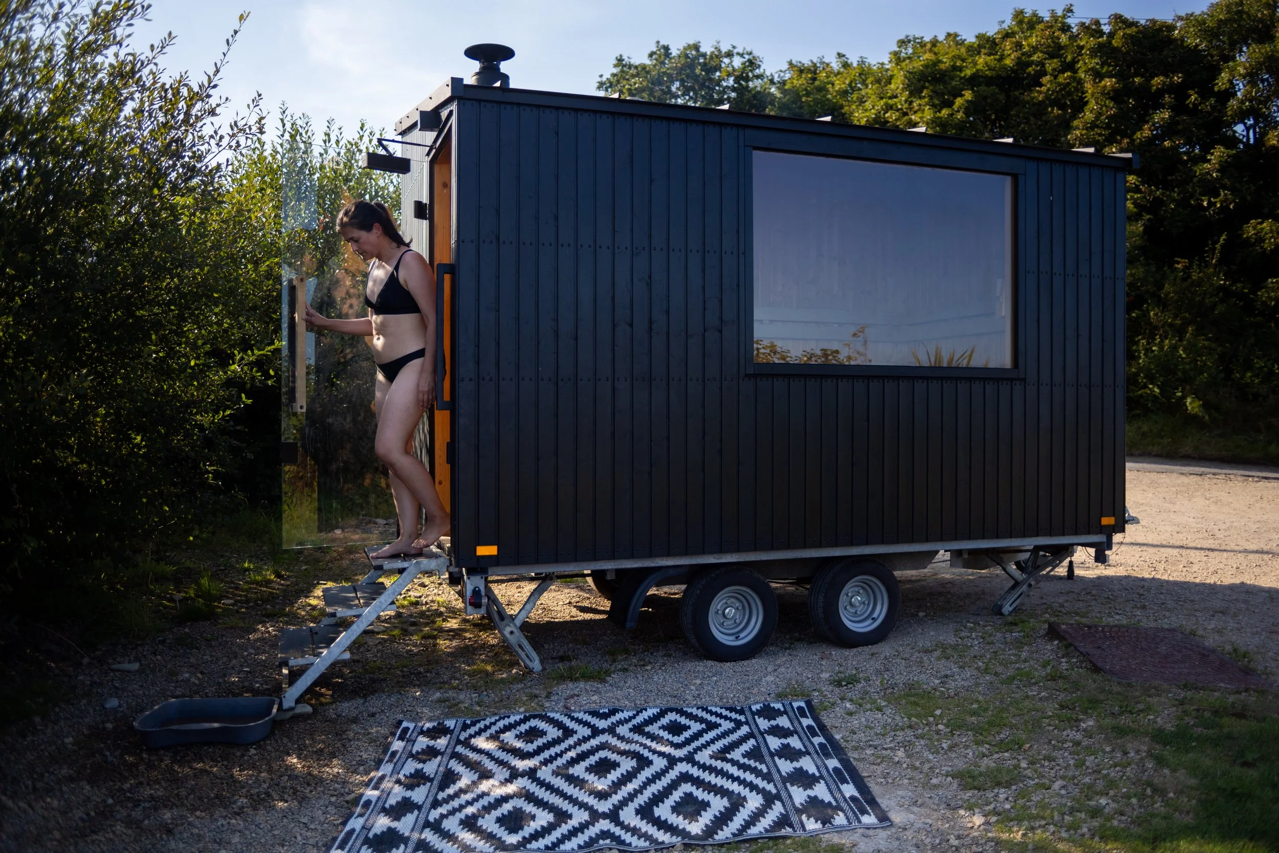 Enjoy the heat and the view for 15 - 20 minutes before cooling off in the sea. Return to the sauna after rinsing your feet.